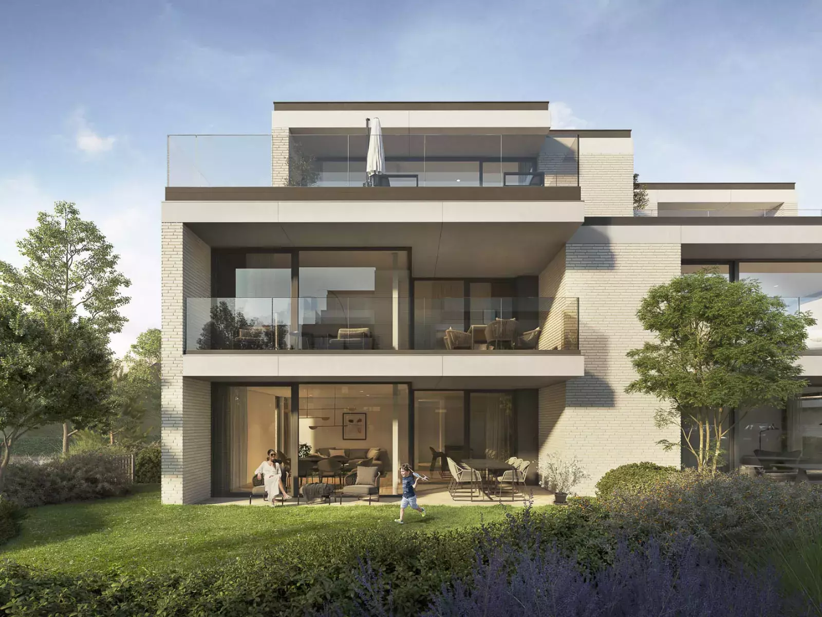 De ruime, private tuinen op het gelijkvloers bieden niet alleen een weelde van groen, maar ook de nodige privacy. De natuurlijke glooiing van het tuinlandschap brengt de duinen als het ware naar je achtertuin.